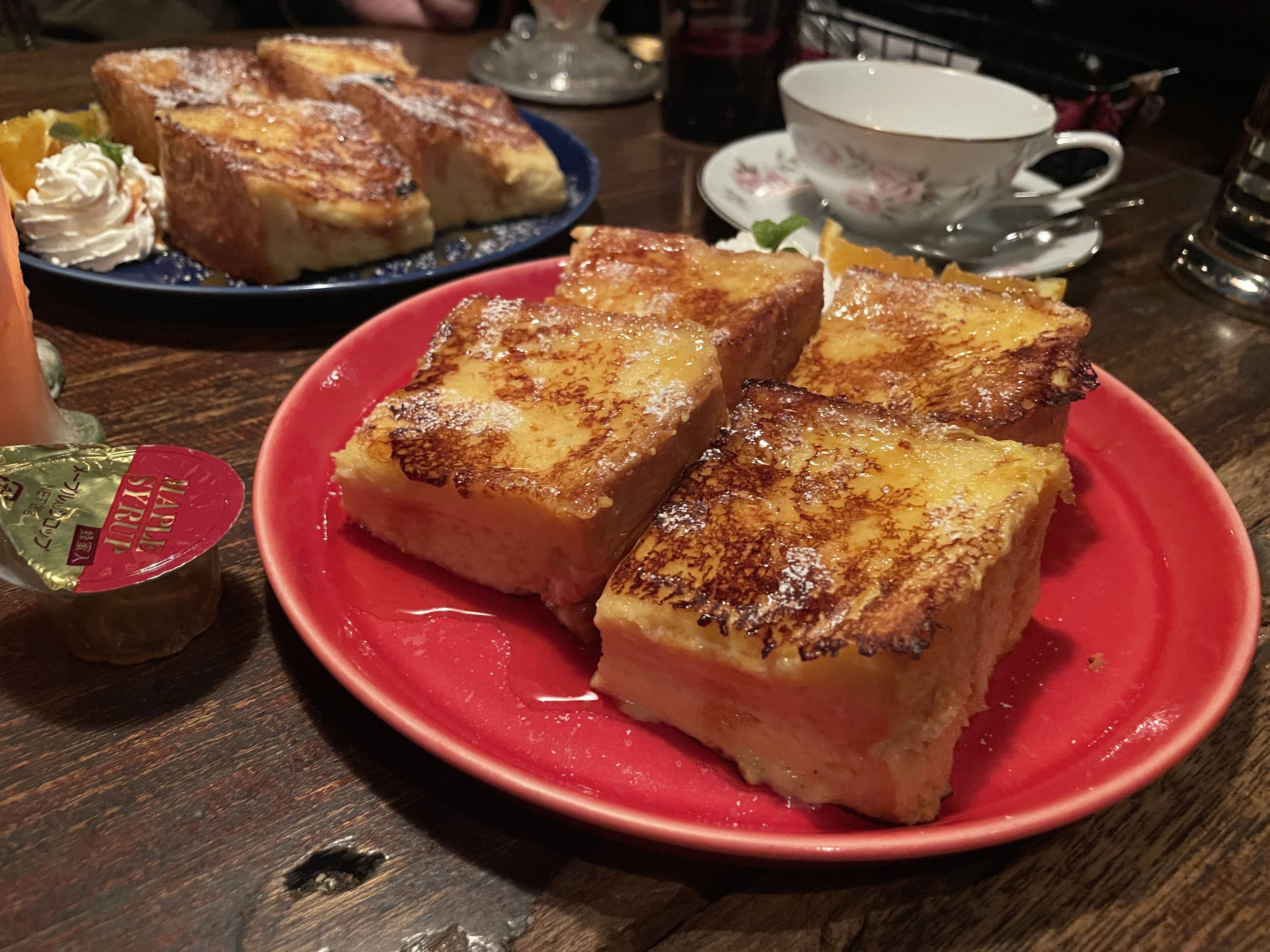 間接照明が心地よく、レトロな雰囲気のあるお店でした!私はフレンチトーストと紅茶をいただきました!