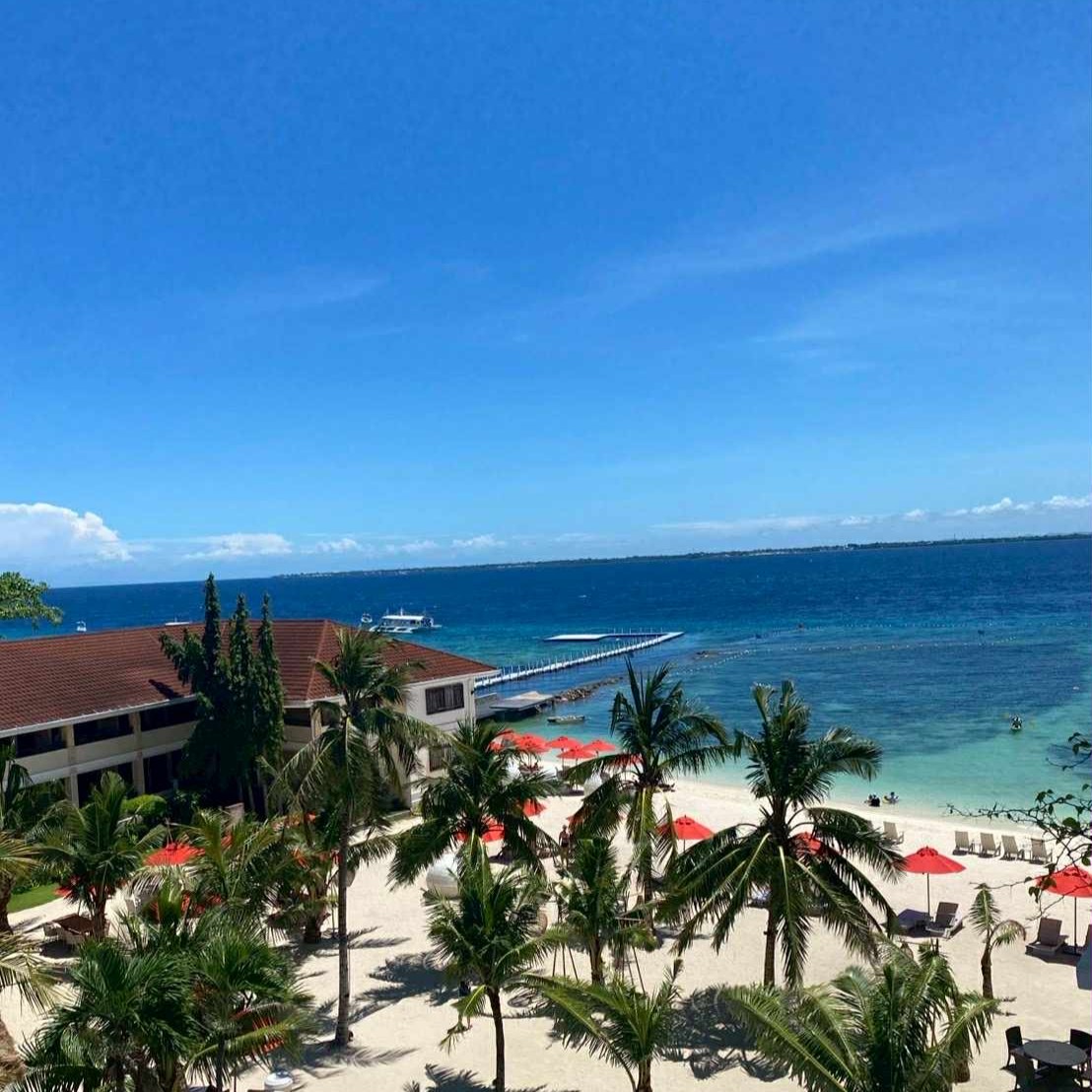 2日目は海とセブ観光を楽しみました。ホテルのプライベートビーチは海が透き通るように青く、とても綺麗で感動しました。